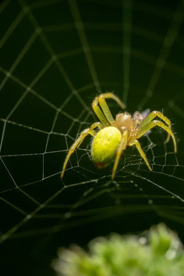 Ich bin kaum sechs Millimeter groß, mit einem glänzend gelblich-grünen Hinterleib, der mit dunklen Vertiefungen geziert ist, und führe ein bescheidenes, aber glückliches Leben. Meine Tage verbringe ich in meinem Netz, das ich geschickt in Bäumen und Sträuchern und meist aus 20 bis 30 Radien angelegt habe.