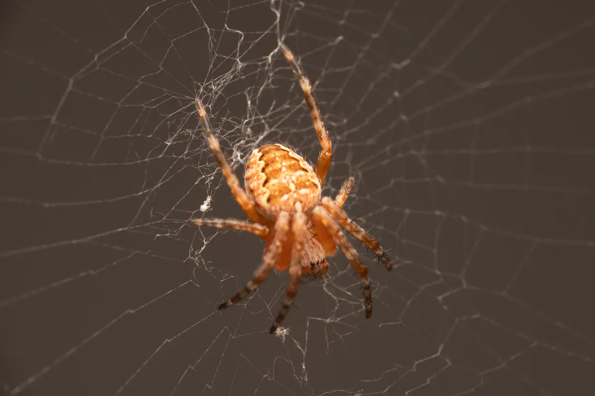 Ein kleiner Schritt für eine Spinne, aber ein großer Sprung für eine Gartenkreuzspinne ohne Garten.